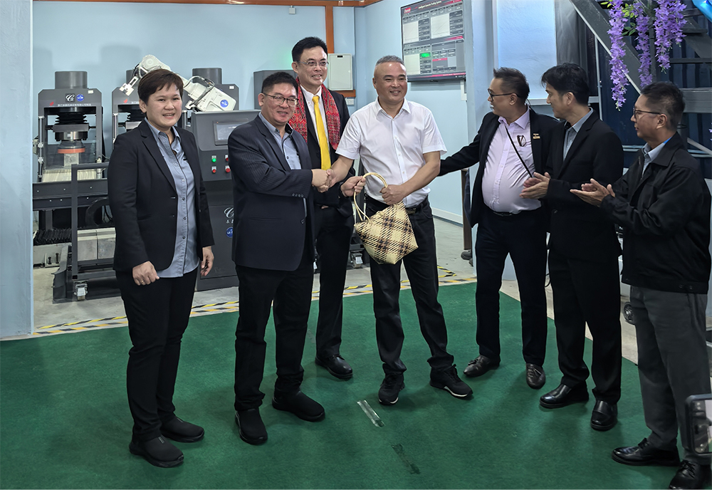 儀式現場,阮偉鑫董事長向砂拉越州政府領導詳細講解了這套由我公司自主研發制造的智能混凝土試驗裝備的先進技術及操作流程,并通過現場演示,更加直觀生動地展示了該裝備的智能化、信息化、自動化、無人化。砂拉越州政府領導高度評價此次活動,稱其為"馬中科技合作的新典范"。 此次成功合作不僅彰顯了我公司在智能裝備領域的技術創新實力,更為公司后續開拓海外市場奠定了堅實基礎。
